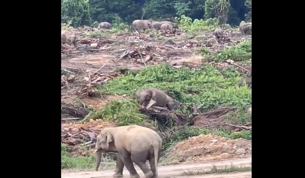 Terdahulu, tular video berdurasi satu minit 16 saat di media sosial yang memaparkan kawanan gajah berada di kawasan ladang bagi mencari makanan.- BERNAMA