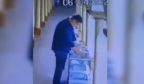 (Tangkap layar video tular daripada rakaman CCTV menunjukkan seorang