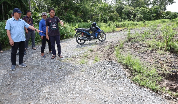 “Kawasan ini sering dilanda banjir dan mengakibatkan tanah menjadi mendap yang pasti menjadi satu kerumitan kepada penduduk kampung, jadi satu keperluan untuk menaikan taraf jalan ini menjadi jalan konkrit.” katanya kepada pemberita selepas meninjau jalan berkenaan semalam.