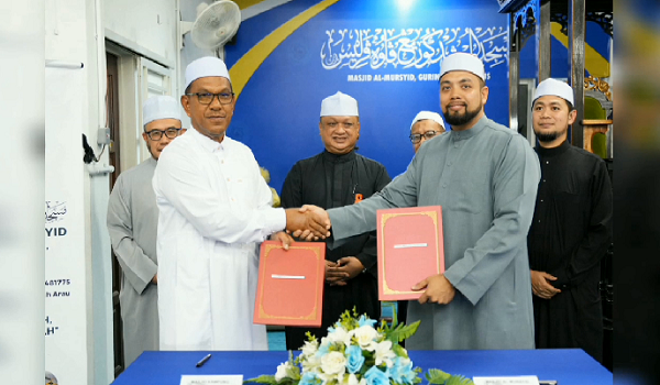 Kerjasama berkenaan termeterai dengan menandatangani Surat Niat Kolaborasi Masjid Berkembar antara Syed Abu Bakar Syed Kamal Bharin Jamalullail dan Pengerusi Masjid Kampong Perlis Tarmizi Ahmad.