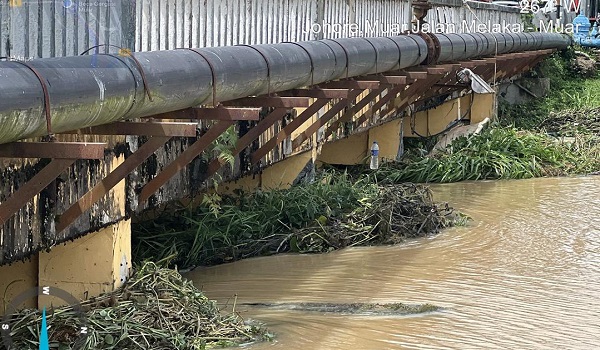 TANGKAK, 29 Disember - Jambatan Sungai Rambai FT001 yang menghubungkan Kesang, Tangkak, Johor, dan Sungai Rambai, Melaka, ditutup selepas struktur rosak dan tidak selamat.
