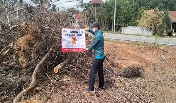 Katanya, kain rentang (banner) larangan aktiviti tersebut juga telah dipasang sebagai langkah pencegahan dan peringatan di beberapa kawasan yang berpotensi pembakaran terbuka berlaku.