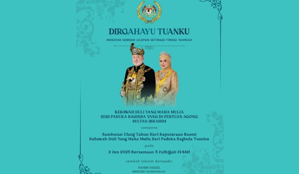 KUALA LUMPUR, 2 Jun- Jemaah Menteri merafak sembah dan menzahirkan ucapan tahniah sempena Ulang Tahun Hari Keputeraan Rasmi Yang di-Pertuan Agong Sultan Ibrahim hari ini.
