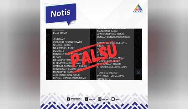 KUALA LUMPUR, 5 November- Orang ramai diminta berhati-hati dengan jemputan palsu mengenai mesyuarat projek menara 5G dan JENDELA 2 di Sabah yang didakwa akan berlangsung di sebuah hotel di Kuala Lumpur hari ini.