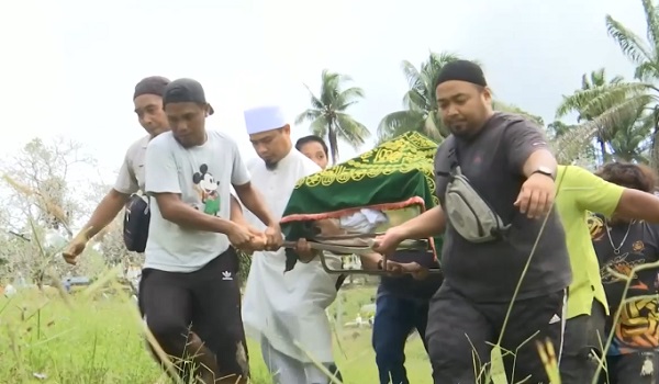 Terdahulu jenazah dimandi dan disolatkan di Masjid Negeri Kota Kinabalu sebelum dibawa ke Sandakan melalui laluan darat.