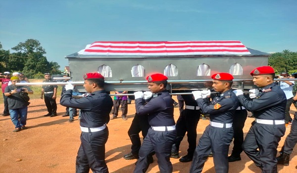 Jenazah dikebumikan kira- kira pukul 10.45 pagi dengan penuh kehormatan diiringi dan diusung oleh pasukan pengusung daripada FRU.