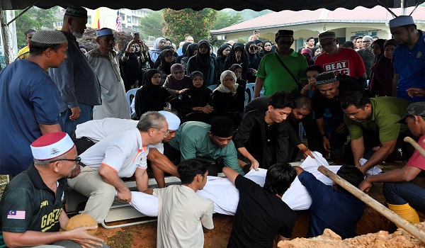KUALA SELANGOR, 15 Ogos- Jenazah Allahyarham Muhammad Nidza Afham Mokhtar selamat dikebumikan di Tanah Perkuburan Islam Puncak Alam di sini pada pukul 6.45 petang tadi.