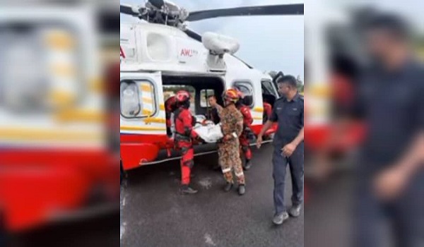 Pemangku Penolong Pengarah Bahagian Operasi Jabatan Bomba dan Penyelamat Malaysia (JBPM) Perak Shazlean Mohd Hanafiah berkata jenazah dibawa turun dari puncak gunung berketinggian 1,933 meter menggunakan helikopter AW189.