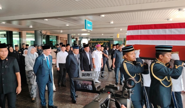 Jenazah bekas Yang Dipertua Negeri Sarawak Tun Abdul Taib Mahmud tiba di Pangkalan Tentera Udara Diraja (TUDM) Subang kira-kira pukul 1. 05 minit tengah hari.