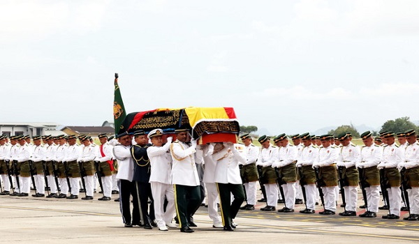 Ketibaan jenazah disambut dengan kawalan kehormat utama Batalion ke-11 Rejimen Askar Melayu Diraja disusuli dengan bacaan doa dan diakhiri dengan lagu Ibu Pertiwiku, sebelum diusung menggunakan kenderaan khas untuk dibawa ke kediaman Allahyarham di Demak Jaya, Jalan Bako, di sini.