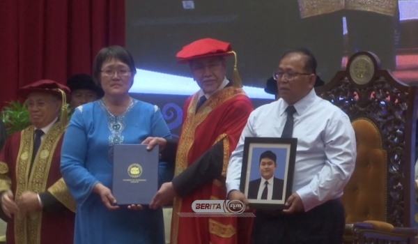 Jenny yang juga merupakan seorang guru di Miri menyatakan penghargaan kepada pihak Senat UTS, para pensyarah dan semua warga universiti atas kasih sayang dan sokongan yang diberikan kepada anaknya.