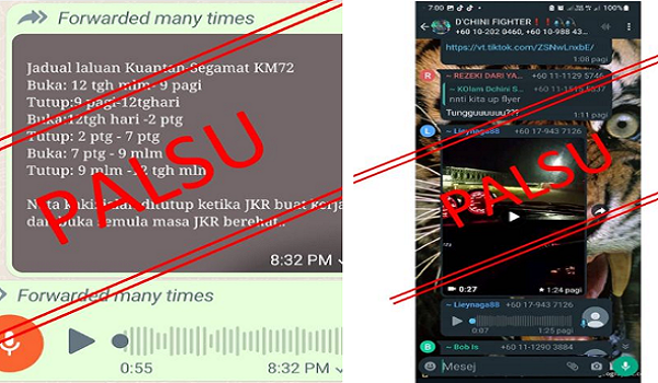 KUANTAN, 14 Januari – Jabatan Kerja Raya (JKR) Pahang menafikan maklumat tular di aplikasi WhatsApp yang menyatakan Laluan Persekutuan FT12 , Kuantan – Segamat, KM72 telah dibuka dan boleh dilalui mengikut jadual kerja dikeluarkan jabatan itu.