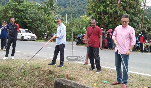 (Menteri Besar Perlis, Datuk Seri Azlan Man cuba memancing ikan pada Pertandingan Memancing dan Menjala Ikan Tertutup DUN Bintong)