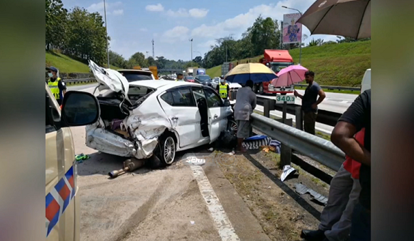(Keadaan kereta selepas kemalangan di kilometer 340.2 Lebuhraya Utara Selatan)