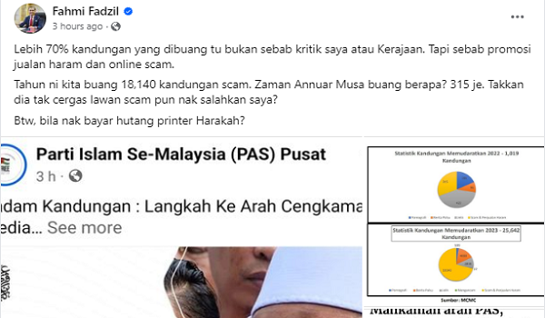 Fahmi yang juga Jurucakap Kerajaan Perpaduan mengulas berita bertajuk ‘Padam Kandungan: Langkah ke Arah Cengkaman Media’, yang diterbitkan Harakahdaily hari ini.