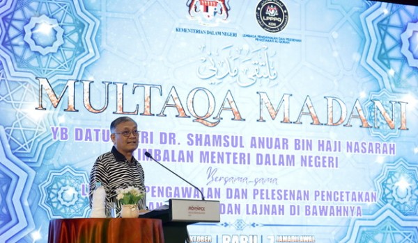 Timbalan Menteri Dalam Negeri, Datuk Seri Dr. Shamsul Anuar Nasarah hadir menyempurnakan pelancaran itu pada Majlis Multaqa MADANI pada semalam.