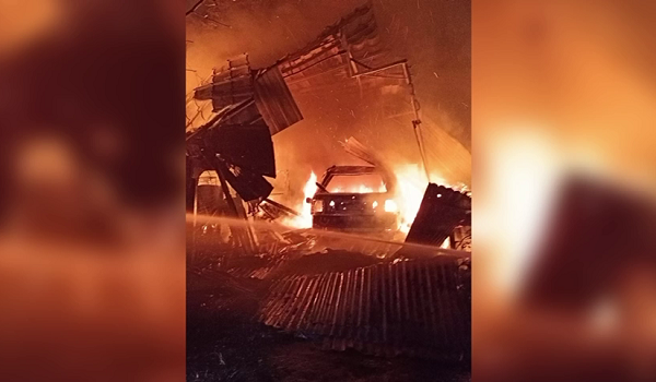 Sebuah kereta sedan turut hangus, sementara lima kenderaan lain mengalami kebakaran sebanyak 20 peratus.