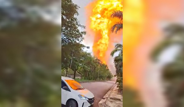Jelasnya, kebakaran berpunca daripada kebocoran saluran paip gas sepanjang 500 meter, menyebabkan api marak menjulang tinggi.
