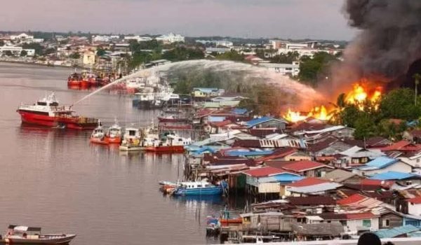 Operasi pemadaman turut mendapat bantuan sebuah kapal dari pesisiran Sungai Miri bagi mempercepatkan sumber air ke lokasi kejadian.