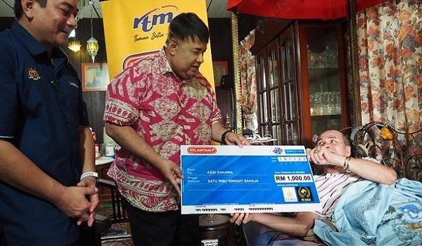 “Jadi dalam kehadapan, jangan sesekali kita lupa orang yang banyak membantu kita, jadi itulah sebab kita ke sini hari ini”, katanya kepada pemberita selepas menyerahkan replika cek bernilai RM1,000 kepada Azizi sempena Program Kelantanfm Ambil Peduli di Kampung Cempaka, Panji.