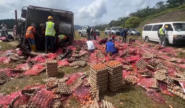 Akibat insiden tersebut, sebahagian daripada 2,500 papan telur ayam yang dibawa musnah, manakala selebihnya dikutip oleh pengguna lebuh raya yang melalui kawasan itu.