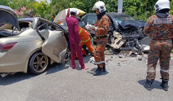 “Lalu masuk ke arah bertentangan sebelum bertembung dengan sebuah lagi kereta dinaiki empat sahabat dari Semerak, Kelantan, menghala ke Benting Lintang, Besut,” kata Azamuddin.