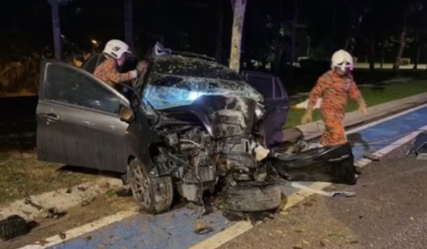 “Ketika tiba di lokasi kejadian, kereta dinaiki mereka terbabas sendiri ke bahu kiri jalan, lalu melanggar sebatang pokok.