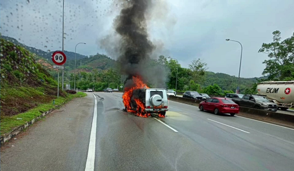 Kebakaran dianggarkan telah memusnahkan 80 peratus kenderaan tersebut.