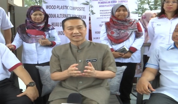 Terdahulu, Datuk Seri Dr. Wee Jeck Seng merasmikan kiosk dan melancarkan Buku Manual Pembinaan Kiosk daripada Wood Plastic Composite (WPC).
