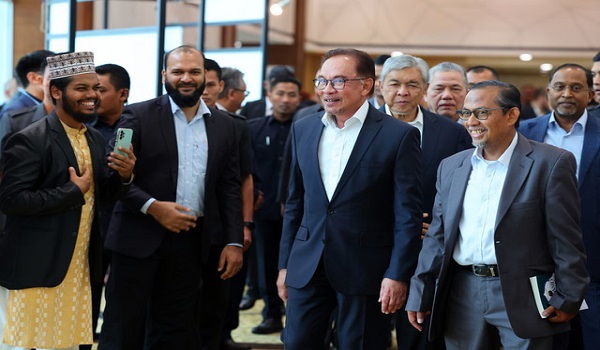 (Perdana Menteri Datuk Seri Anwar Ibrahim (tengah) beramah mesra bersama