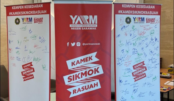 (Kempen #KAMEKSIKMOKRASUAH bersama Yayasan Anti Rasuah Malaysia Sarawakdi Kingwood Hotel, Sibu pada Rabu/FOTO Facebook YARMS)