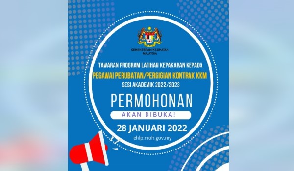 KUALA LUMPUR, 15 Januari – Kementerian Kesihatan (KKM) akan membuka tawaran mengikuti pengajian di peringkat Ijazah Sarjana, area of special interest (AOSI), Ijazah Doktor Falsafah (PhD) dan kepakaran kepada pegawai lantikan tetap serta kontrak kementerian itu.