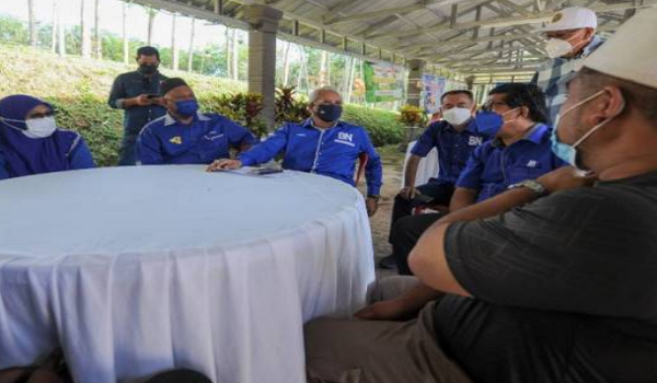(Annuar (tengah) beramah mesra ketika hadir pada program Rewang di Pusat Daerah Mengundi (PDM) Kampung Melayu Paloh dan Kampung Muhibbah Paloh, pada Sabtu./ Foto BERNAMA)