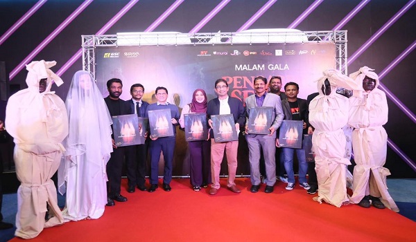 (Datuk Zahidi (tengah) pada malam gala tayangan filem Pengabdi Setan 2 di Petaling Jaya)