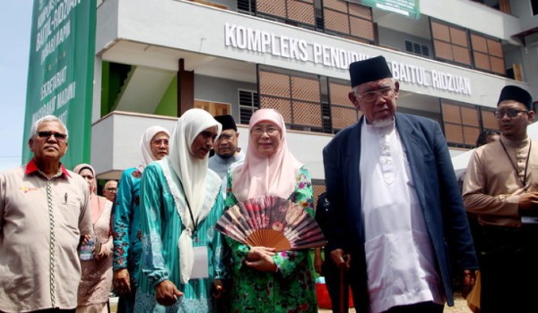 (Isteri Perdana Menteri Datuk Seri Dr Wan Azizah Wan Ismail (tiga, kanan) menghadiri majlis perasmian Kompleks Pendidikan Baitul Ridzuan (KOBAR) dan pelancaran Sekretariat Masyarakat Madani Tambun (SMAT) anjuran Majlis Perundingan Pertubuhan Islam Malaysia (MAPIM) di Jalan Raja, Kampung Manjoi hari ini.