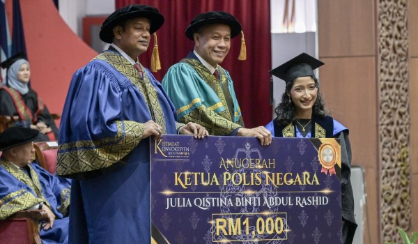 Majlis berkenaan turut menyaksikan penyampaian Anugerah Ketua Polis Negara kepada Julia Qistina Haiqal Mohd Hafiz daripada jurusan Diploma Investigation Services, yang membawa pulang RM1,000 dan syiling emas.