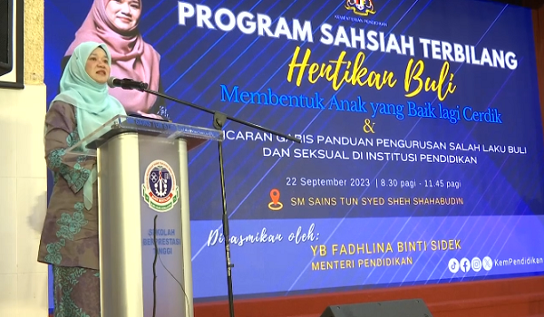 “Penumpuan garis pelancaran ini adalah untuk memelihara ‘human dignity’ atau maruah manusia serta mengelakkan penindasan terhadap maruah ini daripada berlaku dalam ekosistem sekolah kita,” katanya dalam sidang media selepas merasmikan Program Sahsiah Terbilang Hentikan Buli Membentuk Anak Yang Baik Lagi Cerdik di sini, hari ini.