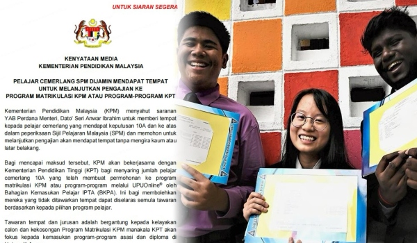 - Semua pelajar SPM dapat 10A ditawar masuk Matrikulasi, tanpa kira kaum – Anwar