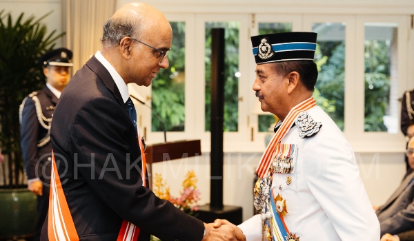 SINGAPURA, 12 Jun – Ketua Polis Negara (KPN), Tan Sri Razarudin Husain telah dikurniakan Darjah Utama Bakti Cemerlang (Distinguished Service Order) oleh Presiden Republik Singapura, Tharman Shanmugaratnam dalam satu istiadat yang berlangsung di The Istana, Orchard Road pada Rabu, ketika lawatan rasminya ke republik itu.