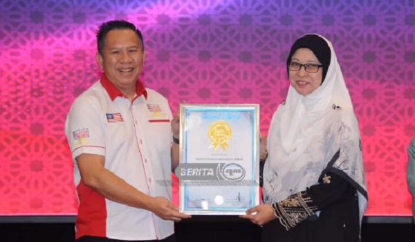 Sijil pengiktirafan diserahkan wakil MBOR, Edwin Yeoh Tiong Chin kepada Ketua Eksekutif KYPJ, Haslinda Abu Bakar.