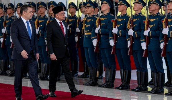 BISHKEK, 15 Mei- Perdana Menteri Datuk Seri Anwar Ibrahim diberi sambutan rasmi oleh kerajaan Republik Kyrgyz di Kediaman Negeri Ala Archa, sempena lawatan sulungnya ke negara itu.