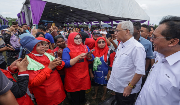Keluarga Malaysia di Felda Palong hari ini/ Foto BERNAMA)