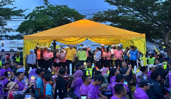 Baginda bersama-sama Tuanku Zara turut berkenan beramah mesra dengan para peserta larian dan melawat beberapa check point di sepanjang laluan larian tersebut.