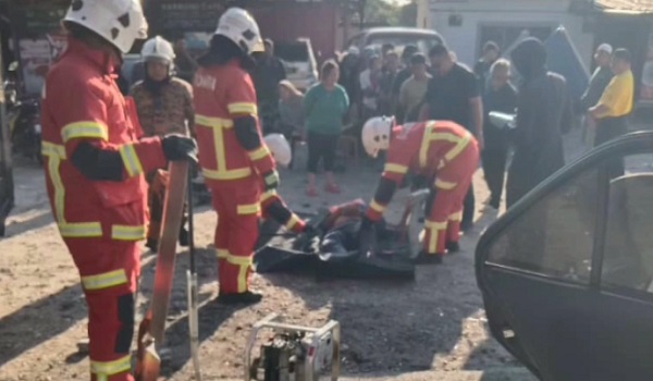 Mangsa yang tersepit disahkan meninggal dunia oleh petugas Kementerian Kesihatan (KKM) dan diserahkan kepada pihak polis.