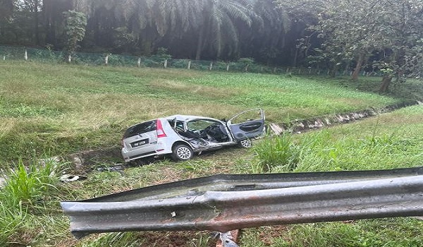 Kemalangan yang dilaporkan kira-kira puku 7.00 pagi itu menyebabkan kereta terbabit mengalami kerosakan teruk pada bahagian depan, lampu dan cermin depan pecah serta pintu kiri kemek.