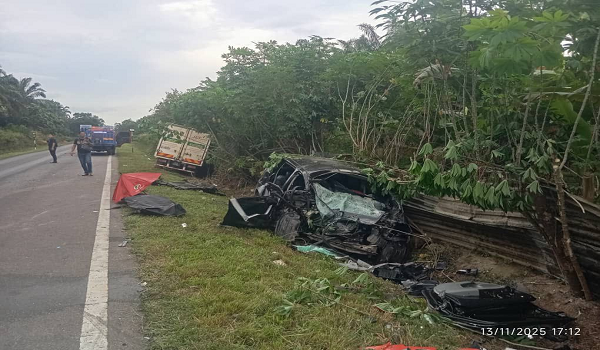 Siasatan awal mendapati lori berkenaan yang datang dari arah Melati hilang kawalan sebelum terbabas ke laluan bertentangan lalu bertembung dengan kereta dipandu mangsa.