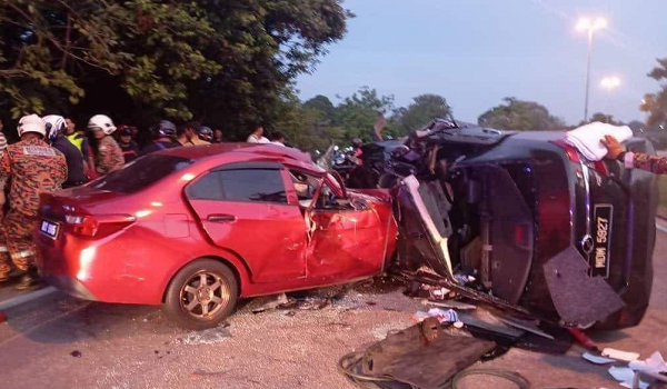 Kemalangan itu katanya dipercayai berlaku apabila Perodua Bezza memasuki ke laluan bertentangan sebelum bertembung dengan Proton Saga.