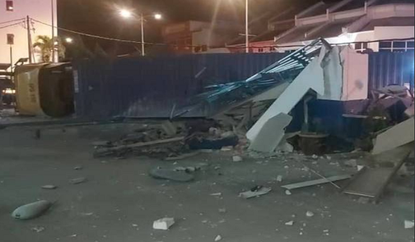 Dalam kejadian kira-kira pukul 1.25 pagi semalam, lori kontena membawa muatan kerusi permainan itu sedang dalam perjalanan ke Ipoh dari Kuala Lumpur sebelum terbabas dan merempuh pagar utama serta pos pengawal.