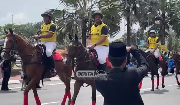 Sebelum itu ketibaan baginda berdua ke Dewan Jubli Perak Sultan Haji Ahmad Shah, 16 orang pemain Polo Kelab Diraja Pekan menunggang 16 ekor kuda bagi mengiringi kenderaan khas baginda berdua bermula di hadapan Kompleks Teruntum sehingga ke Pejabat Pos Besar Kuantan.