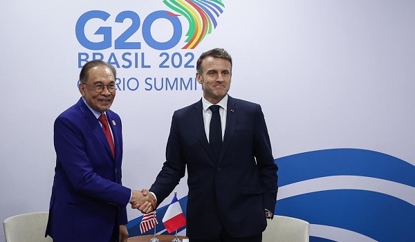 RIO DE JANEIRO, 19 November- Perdana Menteri Datuk Seri Anwar Ibrahim mengadakan pertemuan dengan Presiden Perancis Emmanuel Macron pada luar Sidang Kemuncak Kumpulan 20 (G20) di sini.